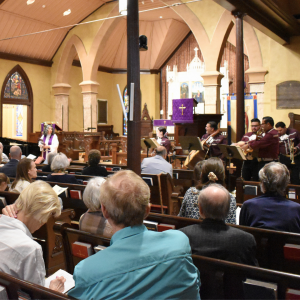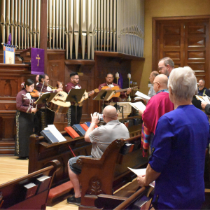 Bethell Hall Director of Music Mark Wishkaemper shared a lovely story of collaboration between musicians while preparing for this service. Mark took the melody of Cordero de Dios/Lamb of God and wrote a chord progression for guitar. The folks from Mariachi Clasico liked it, so Mark gave it to them to add to their repertoire!