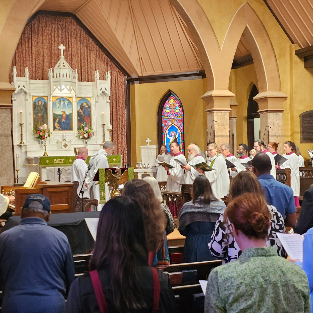 Our Communion hymn, ‘Ye who claim the faith of Jesus’ [268/269], speaks of the Blessed Virgin’s role in the Incarnation, drawing some wording from the Collect for the Feast of the Visitation. The Hymnal text concludes with a one-stanza summary of the Magnificat; the version printed at 269 includes the refrain ‘Hail Mary, full of grace’, while that at 268 omits this but instead sets the first line of the Latin text as a descant. Since this parish does not know either of the tunes printed with this hymn, we sing it to ‘Divinum mysterium’, associated with the great Christmas hymn ‘Of the Father’s love begotten’ [82], which allows the singing of the ‘Hail, Mary’ refrain.