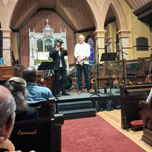John Burnett, World Music Encounters producer and former NPR national correspondent asked of the band during the usual interview portion of the show, asked Rique about working with Chet Baker, his work around the world, and how being a person of faith has influenced his musical journey. Rique replied that he believes our creator delights in our gifts and the music offered tonight was a gift he was grateful to share with us.