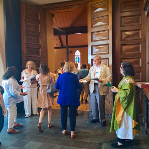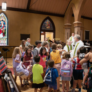 On Sunday, Aug. 17, we welcomed the parish back from Summer with our annual Welcome Home Sunday celebration. We had special music and back-to-school blessings, including blessing donated books and backpacks from our back-to-school drive for Norman-Sims Elementary. We followed worship with a parish meal and update from Sr. Warden John Crow. The kids and youth had their own meals in the Youth Room and on the Playground with a giant slip-and-slide!
