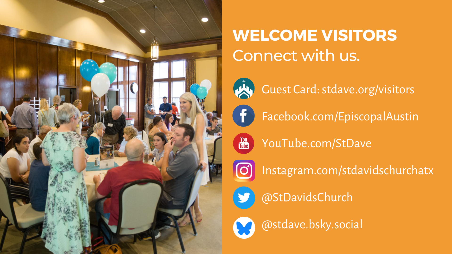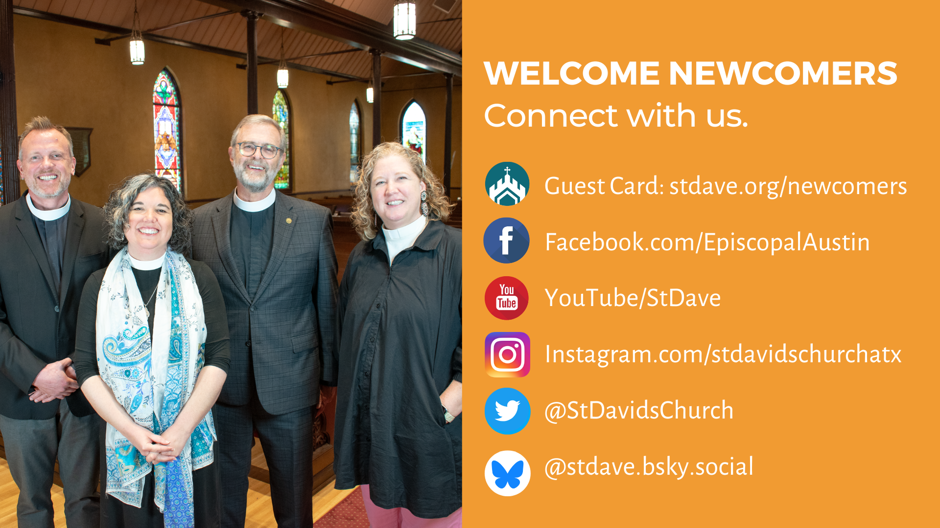 Welcome to St. David’s Episcopal Church, an open and affirming church. You are welcome in this place! Whether you are visiting from Austin or from out of town; new to the Christian faith or seeking a church home; we invite you to explore St. David’s. Wherever you are on your spiritual journey, we will meet you where you are.