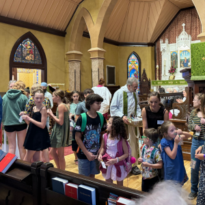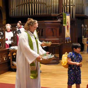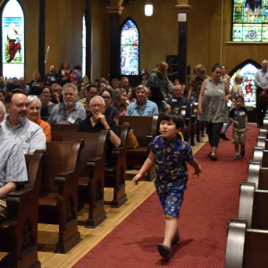 Next, children and educators came to the altar for backpack and bag blessings and to receive back-to-school bag tags from Director of Children's and Family Ministries Fr. Kristin Braun. Children and Youth are invited to a Fall programming orientation on the first floor from 10-11 a.m. on Sunday, Aug. 25.