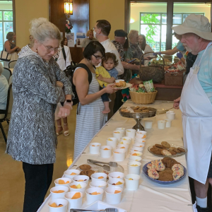 After worship, we gathered for fellowship and a hearty lunch prepared by Chef Ray's kitchen volunteer team in Sumners Hall. Fr. Chuck gave updates on our Year of Discernment, how to volunteer for Trinity Center's new Cooling Center pilot, and Executive Director of Next-to-New Robert Reid spoke about the shop and their mission.
