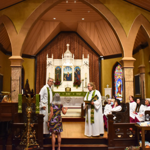 Following the blessings, there was a surprise final "priest-wrangling" duty from Catherine Roberts, executive assistant to the Rector, who reminded Father Chuck of a missed announcement! Catherine is retiring in September and is celebrating her 20 years of ministry in Sumners Hall at 10 a.m. on Aug. 25.